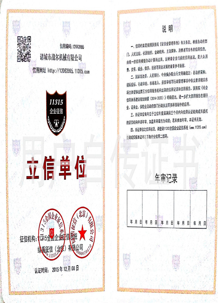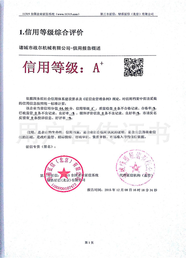 山东战尔机械有限公司座落于著名的“恐龙之乡”山东省诸城市,通过ISO国际质量体系认证,国家颁布的信用A+企业,有立业必先立人,立人必先立信的执念。